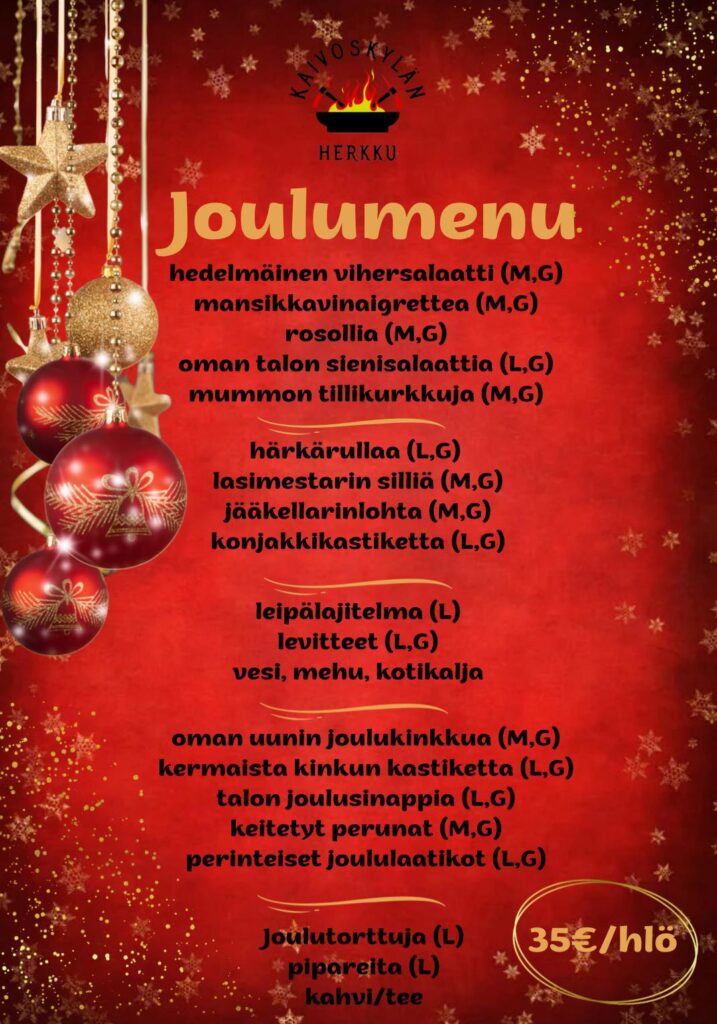 Muistathan ilmoittaa erikoisruokavaliot ja allergeenit tilauksen yhteydessä.